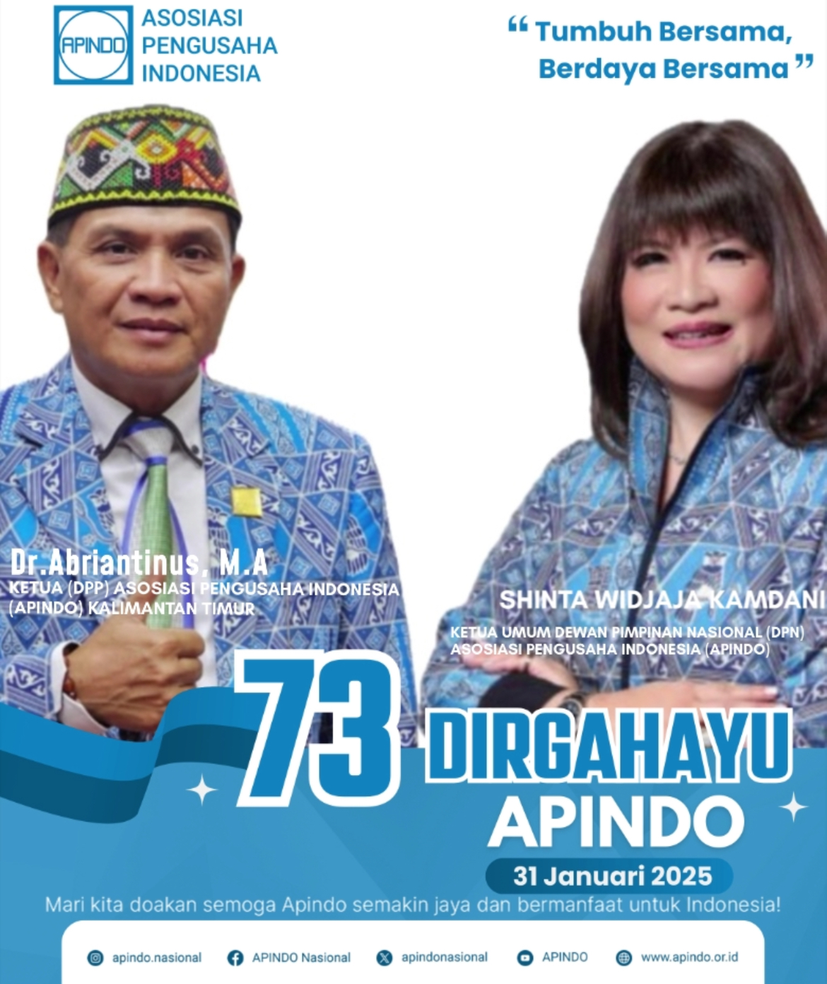 Balikpapan(31/1), Nansarunai.com– Dalam moment hari jadinya, Ketua DPP Asosiasi Pengusaha Indonesia (Apindo) Kalimantan Timur, Dr. Abriantinus, M.A., mengucapkan selamat ulang tahun ke-73 untuk Apindo, yang telah berdiri sejak 31 Januari 1952. Dr. Abriantinus, M.A menyampaikan harapannya, agar Apindo terus maju dan memberikan kontribusi besar bagi dunia usaha serta perekonomian nasional.