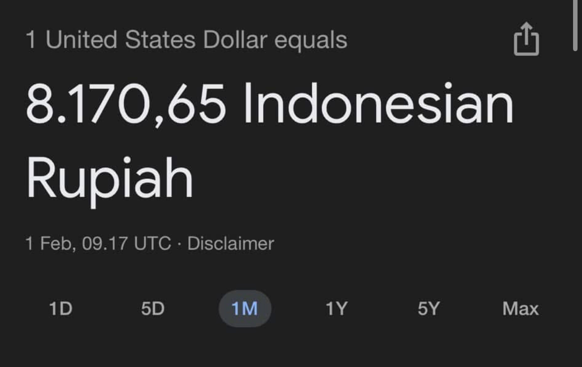 Jakarta(1/2), Nansarunai.com– Warganet dibuat terkejut dengan tangkapan layar yang menunjukkan nilai tukar 1 dolar Amerika Serikat (AS) hanya Rp 8.170 di Google. Padahal, berdasarkan data perbankan dan layanan keuangan lainnya, kurs rupiah terhadap dolar AS masih berada di angka normal.