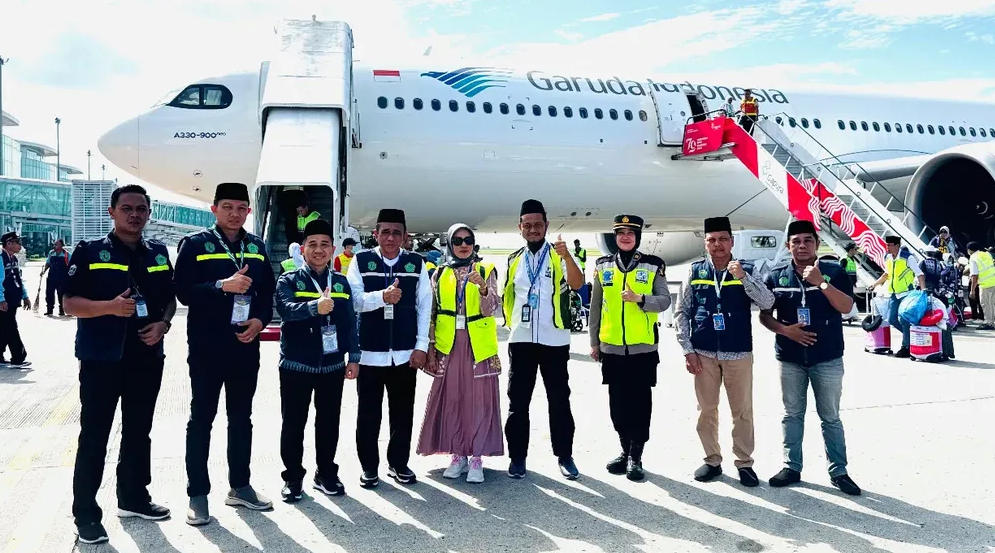 Rombongan berjumlah 360 orang, termasuk 4 petugas kloter, mendarat di Bandara SAMS Sepinggan Balikpapan pukul 08.48 Wita dan langsung diangkut menggunakan 10 unit bus Damri menuju asrama haji dengan pengawalan dari Satlantas Polresta Balikpapan.