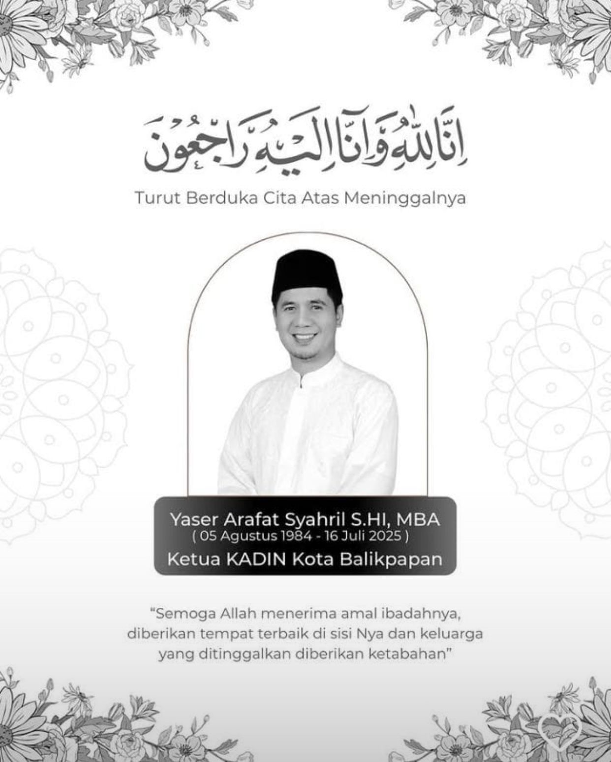 Balikpapan(16/7), Nansarunai.com – Kota Balikpapan tengah diselimuti duka yang mendalam. Salah satu tokoh muda dan pemimpin komunitas bisnis terkemuka, Yaser Arafat Syahril, telah berpulang ke rahmatullah pada Rabu dini hari, 16 Juli 2025, dalam usia 40 tahun.