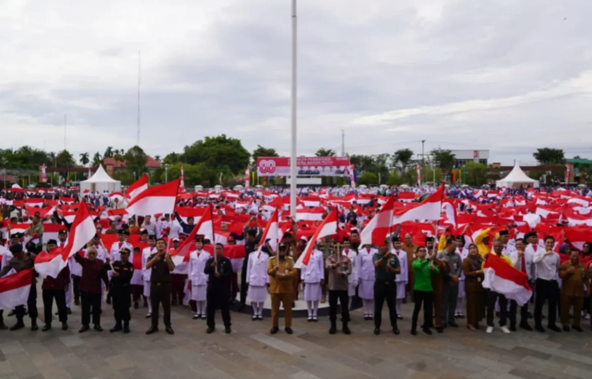 Acara berlangsung khidmat dan meriah dengan tarian kolosal, penyerahan bendera simbolis, serta diikuti lebih dari 1.000 peserta dari OPD, pelajar, dan masyarakat. Wakil Bupati berharap kegiatan ini menumbuhkan cinta tanah air, mempererat persatuan, dan menyebarkan semangat kemerdekaan hingga ke pelosok desa.(hms)