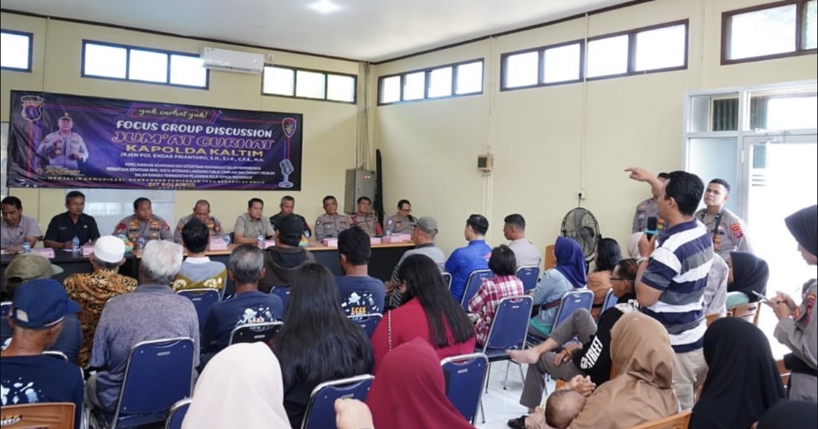Balikpapan(11/10/), Nansarunai.com – Direktorat Polairud Polda Kalimantan Timur menggelar kegiatan Jumat Curhat bersama masyarakat dan pelaku usaha tahu tempe di Aula Kantor Industri Tahu Tempe, Jalan A.W. Syahrani, Balikpapan Utara, pada Jumat (10/10/2025). Kegiatan yang dihadiri oleh Wadir Polairud Polda Kaltim AKBP Supriyanto, serta perwakilan dari berbagai satuan kerja Polda Kaltim dan instansi terkait ini bertujuan mempererat komunikasi antara kepolisian dan masyarakat, sekaligus menampung aspirasi warga terkait keamanan dan ketertiban di wilayah Balikpapan Utara.