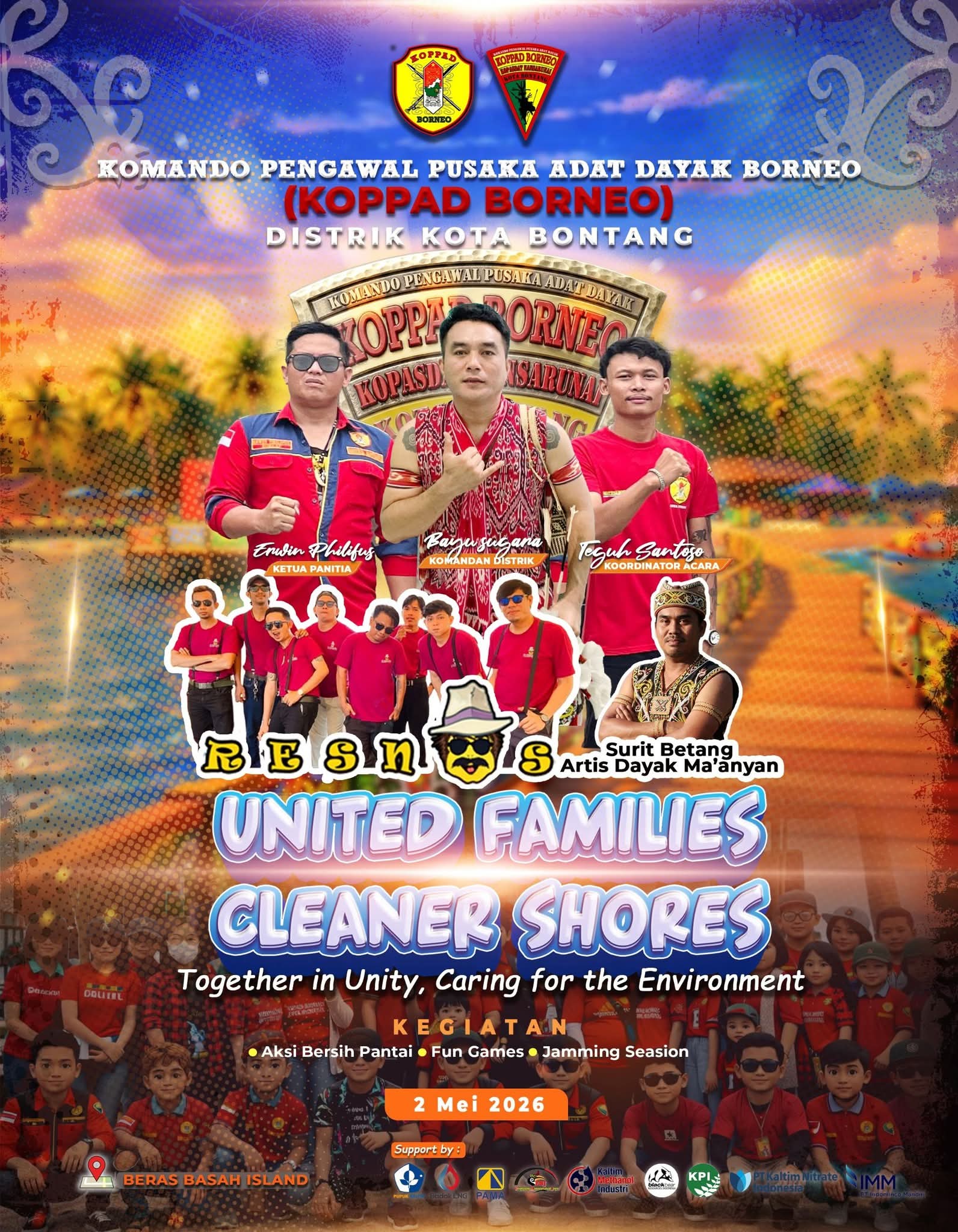 Bontang(28/4), Nansarunai.com – Komando Pengawal Pusaka Adat Dayak Borneo (KOPPAD Borneo) Distrik Kota Bontang akan menggelar kegiatan bertajuk “United Families, Cleaner Shores” pada 2 Mei 2026 di Beras Basah Island. Kegiatan ini mengusung semangat kebersamaan serta kepedulian terhadap lingkungan pesisir.